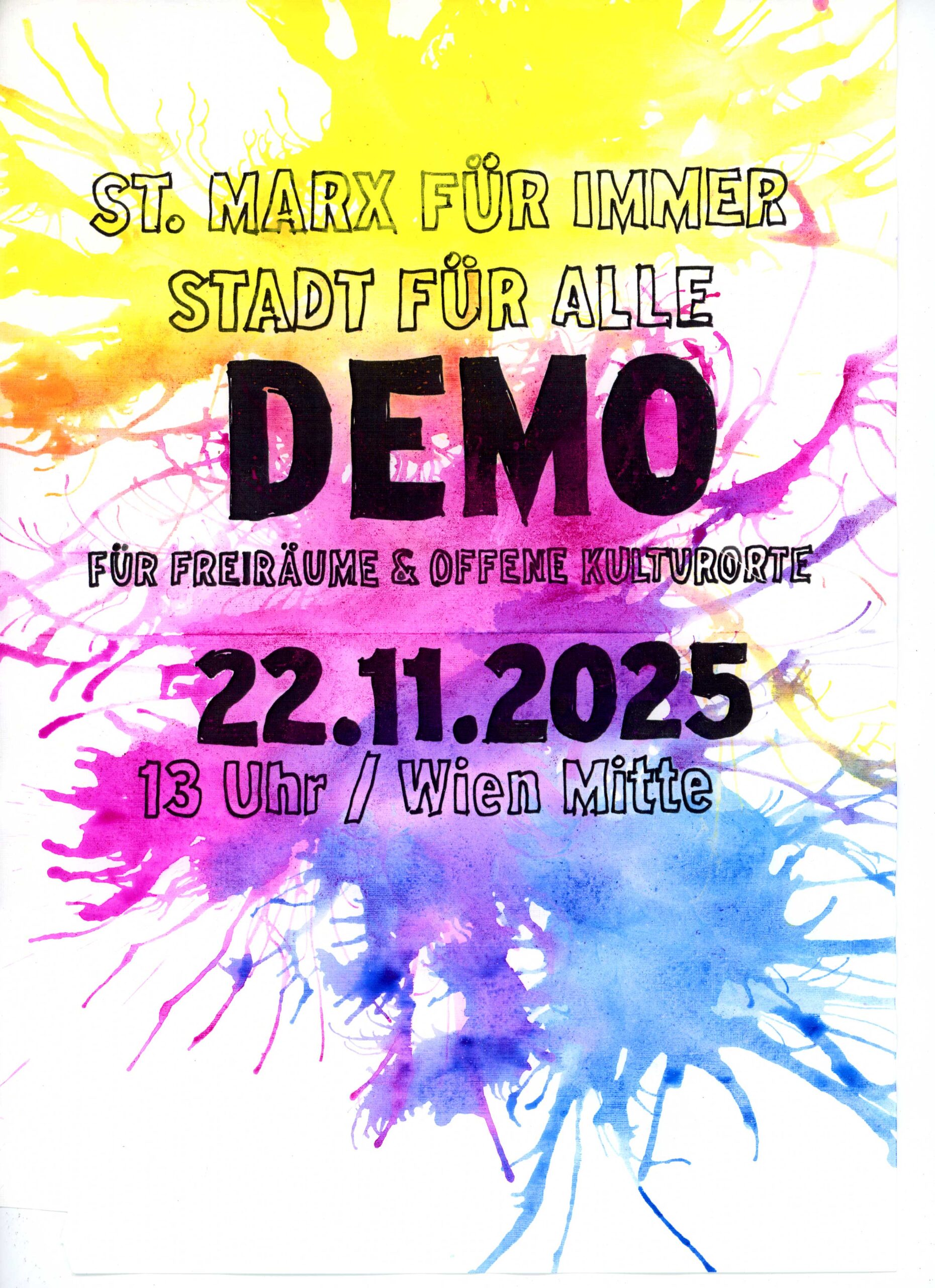 die stadt wien und cts eventim ag wollen den freiraum st.marx zerstören und dafür eine mega-event arena hinsetzen. 216 millionen euro von der stadt, während das essen von obdachlosen gestrichen wird, kultur und kunst-budgets gekürzt werden, die öffi-tickets erhöht werden oder subsidiär schutzberechtigte den anspruch auf mindestsicherung verlieren.